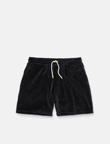 These OAS Nearly Black shorts are oh-so-soft, thanks to their velvety velour material. With a non-functional fly, an elasticated drawstring waistband, slanted side pockets, and a convenient welt pocket in the back, these shorts are the epitome of comfort and style.
