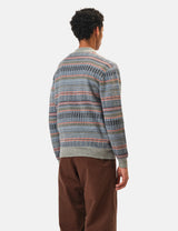 The Beams Plus Half Zip Knitted Jacquard Polo in grey is your cosy winter buddy. Made from a wool and nylon mix, it’s ideal for layering on chilly days without sacrificing style. Featuring a ribbed collar, cuffs, and hem, plus a handy zip neck for extra charm and warmth.
