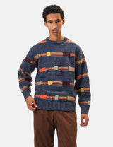 Beams Plus Jacquard Fair Isle Knitted Crew (Stripe 5G) - Navy Blue