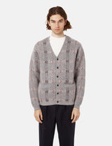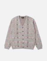 Beams Plus Mohair 9G Cardigan (Jacquard Check) - Grey
