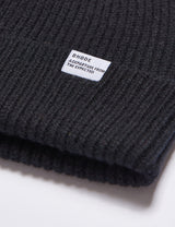 The Hawick short knitted beanie hat in black. This Bhode beanie is constructed in a breathable ribbed weave design, this classic fisherman beanie hat is ideal for your winter wardrobe.