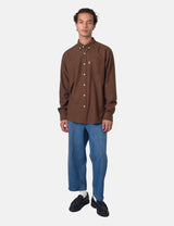 Meet the Bhode Flannel shirt in a rich burnt umber shade, featuring a button-down collar with a comfy regular fit. It’s topped off with a handy chest pocket flaunting the Bhode tab for a cheeky touch.