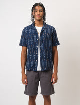 Bhode Ikat Short Sleeve Shirt (Hand Loom) - Navy Blue
