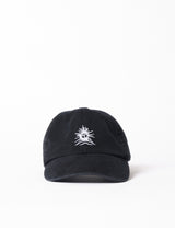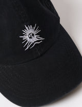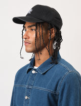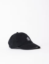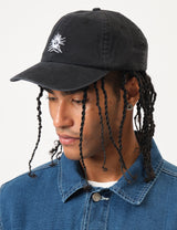Introducing the Bhode Mên-an-Tol Sun cap, featuring a washed cotton fabric and a six-panel design in washed black. This cap includes ventilation eyelets, embroidered graphic, an adjustable strap, and Mên-an-Tol embroidery on the rear. It is also offered in forest green and cornish stone.