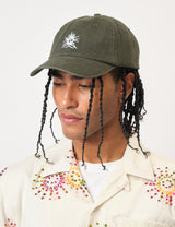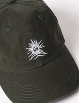Introducing the Bhode Mên-an-Tol Sun cap, featuring a washed cotton fabric and a six-panel design in forest green. This cap includes ventilation eyelets, embroidered graphic, an adjustable strap, and Mên-an-Tol embroidery on the rear. It is also offered in black and cornish stone.