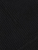 This Newlyn Fishermans Bhode beanie in black boasts ribbed weave design, a traditional knit style favoured by fishermen. It's crafted from 100% lambswool from Hawick in Scotland, a renowned source of premium wool.