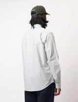The Bhode take on a menswear classic, the Oxford stripe shirt in white and olive green. Made in a regular fit, with button down collar. This simple menswear staple is finished with a single chest pocket and Bhode tab branding.