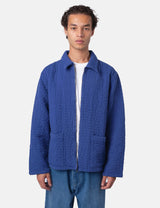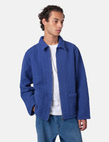 Meet the Bhode indigo blue Textured Zip Jacket, a fun twist on classic workwear. Crafted from padded textured fabric, it features two roomy front pockets, a zip-up front, and a clean, straight hem. Plus, it’s available in classic black too!