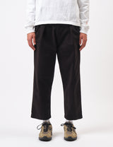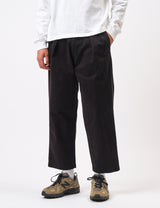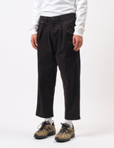 Crafted in garment dyed black cotton twill, the new Bhode two pleat pant is designed for those who don't take themselves too seriously.