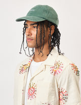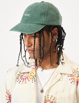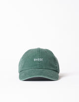 Discover the updated Bhode script cap, featuring a washed cotton fabric and a six-panel design in a refined forest green. This cap includes ventilation eyelets, embroidered Bhode logo, an adjustable strap, and a branded Bhode tab. It is also offered in navy blue and black.