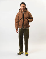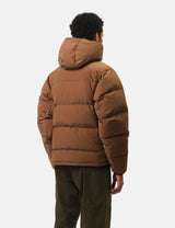 Inspired by vintage mountaineering style, the Gramicci Down Puffer Jacket in brown is your ultimate cold-weather companion. Featuring a smooth nylon exterior and cozy down filling, it’s snug, warm, and comfy.