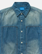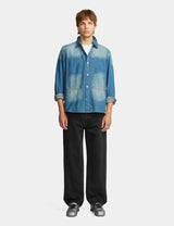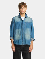 Crafted from soft and lightweight 100% cotton denim in a bold blue colour, it's designed with an eye-catching heavy wash effect and contrasting tobacco topstitching. Plus, it comes with unique ammo-style pockets, a stylish Larriet woven label, and pearlescent buttons for a touch of flair.