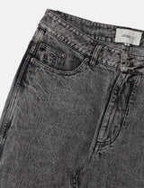 The Heresy Heretic Jeans are crafted from acid-washed black cotton denim with five classic pockets. These regular-fit jeans stand out with a cute embroidered 'Arch' logo on the coin pocket, sturdy YKK buttons and rivets, plus a stylish jacron paper patch at the back. Perfect for adding some edge to your everyday look!