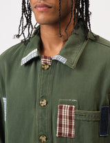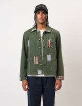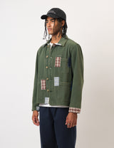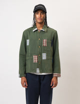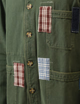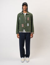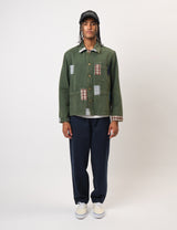 Discover the new Bhode patchwork chore jacket in ever green, crafted in the style of our MK.II French chore but uniquely detailed with full patchwork design.