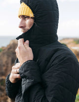 Meet the Finisterre Firecrest hooded jacket in classic black. Inspired by the UK's tiniest bird, this jacket is perfect for your busy, adventurous days. It slips on effortlessly over a tee or jumper and fits neatly under a waterproof shell. Lightweight and packable, it’s your go-to for cozy warmth that moves with you when the sun sets or the breeze kicks in.