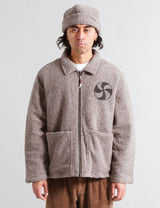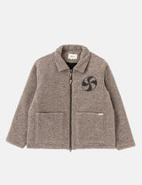 The Heresy Seedsman Coat in mushroom offers cozy warmth with its soft wool blend padding. This stylish jacket features the distinctive 'Portal' logo on the chest, practical patch pockets adorned with a printed label, and a unique custom zip puller.