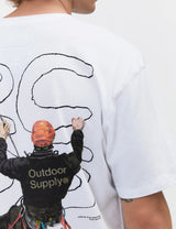 The RCOS Climber JR tee in white. Original artwork by Jacob Rochester brings this piece to life, turning an everyday essential into a wearable work of art.
