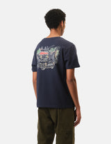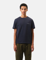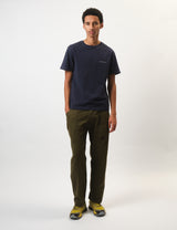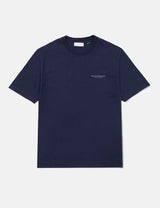 This navy blue Edmmond Studios Savile Row tee is made from 100% organic cotton, offering a comfy relaxed fit and just the right length. It sports a unique "Savile Row" design on the back and the cheeky "Edmmond ART Foundation" logo on the front chest. Crafted with care in Portugal, it's the perfect blend of style and comfort.