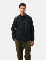 The Finisterre Basset Chore Jacket in navy sports a snug flannel lining to keep you cozy. Fully lined with our soft organic cotton checked flannel, this jacket is ready for chilly days and cool nights outdoors.