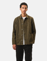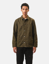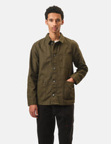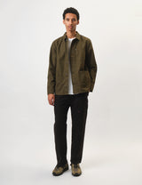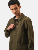 The Finisterre Basset Chore Jacket in olive green sports a snug flannel lining to keep you cozy. Fully lined with our soft organic cotton checked flannel, this jacket is ready for chilly days and cool nights outdoors.