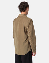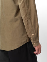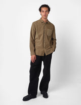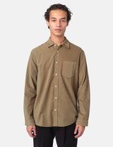Meet the Folk Direction Babycord Shirt in olive green shade. With its easygoing fit, a handy chest patch pocket, and unique Corozo nut buttons, this shirt crafted from soft cotton fine wale corduroy is all about relaxed style with a twist.
