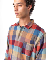 Folk’s Crimson Blue Mix version features a cozy, soft flannel adorned with a bold Autumnal check pattern. Crafted with care, the fabric comes straight from a Portuguese mill, making it perfect for adding warmth and style to your seasonal wardrobe.
