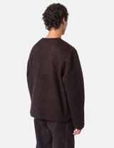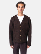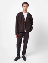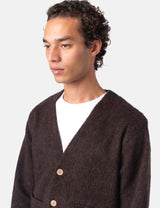 Meet the Folk Pocket Brushed Wool Cardigan, rocking a cool navy and espresso melange mix. This chunky, boxy-fitted cardigan is crafted from a cozy heavyweight Italian wool blend with a soft brushed finish. It comes with five buttons and handy patch pockets, perfect for keeping your essentials close and your style effortlessly fun!