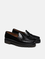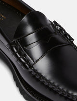 The G.H. Bass Weejuns 90 Larson Penny is a timeless classic loafer, crafted from polished black leather and hand-stitched seams in waxy thread.