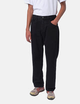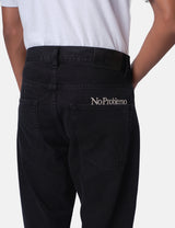 The No Problemo Bagi Jean in black brings a playful 90's skater vibe with its vintage-inspired unisex design. These jeans are made to be worn baggy for that effortlessly cool look. They feature a No Problemo embroidered logo on the back, an Alien-O leather patch, and a signature branded button for extra flair.