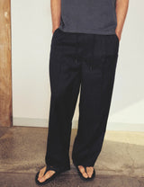 Experience understated elegance with the Larriet Onder Pant in midnight blue. Built from a resilient wool and polyester twill, this generously cut style delivers comfort through its half-elastic waistband paired with an adjustable internal drawstring.