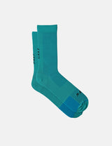 A new colour in this classic style, the MAAP Division Mono socks in lagoon green. With dynamic arch support and padded toe, a mid-weight option that promises comfort. Designed to keep your feet fresh, it features breathable and moisture-wicking technology along with antimicrobial properties. Perfect for tough rides!