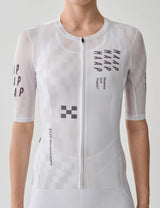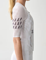 The Woman's MAAP Privateer Freddy Ovett Pro Air Jersey 3.0 cranks up the airflow with cleverly placed mesh panels that keep you cool when the heat is on. Its super-soft, high-tech fabric feels featherlight and breezy, designed to keep you comfortable and ready to race.