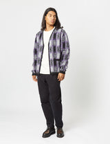Crafted from vibrant black and purple coloured check, it has an eye-catching design that'll take your wardrobe to dizzying new heights. Made with two front pockets, ribbed cuffs and hem, and six button placket.