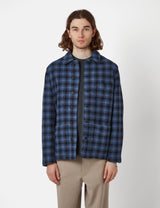 A classic French workwear-inspired 3-pocket chore jacket, in merino wool, featuring an internal chest pocket, two patch pockets on the front, a slimmed-down modern collar shape.