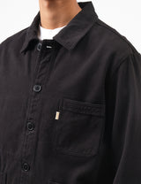 Expertly tailored from 350gsm cotton twill, this classic yet quirky French workwear jacket boasts a boxy fit. Features a Bhode label on the breast pocket, tonal buttons, and double fabric fold for added charm and functionality.