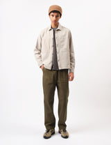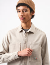 Introducing the Bhode Map Pocket Overshirt Twill made in a Cornish stone hue. With its 350 gsm cotton twill fabric and seasonal Mên-an-Tol Bhode label on the chest pocket, this versatile overshirt combines classic workwear style with a boxy fit.