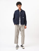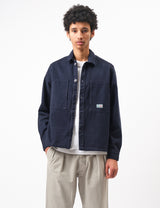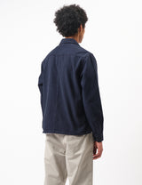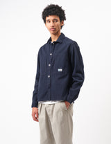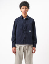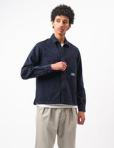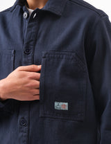 Introducing the Bhode Map Pocket Overshirt Twill made in a nigh sky navy blue hue. With its 350 gsm cotton twill fabric and seasonal Mên-an-Tol Bhode label on the chest pocket, this versatile overshirt combines classic workwear style with a boxy fit.