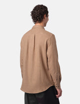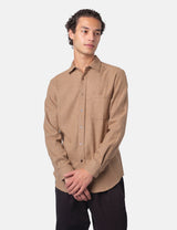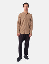The Portuguese Flannel Abstract Pied Poule Shirt in brown is a timeless pick for the season ahead.