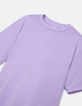 The Satisfy Auralite T-Shirt in mineral purple. A mineral dyed AuraLite™ tee that's both incredibly soft and lightweight, weighing 111 grams.