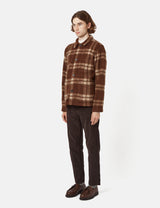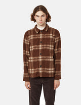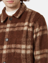 The Field Jacket from Universal Works is a loose-fitting worker-style jacket that has a super simple four-button front and three patch front pockets.