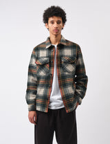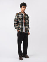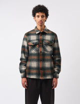Introducing the Portuguese Flannel Gauli Overshirt in forest green - a durable flannel overshirt donning a rich autumnal colour check. Adorned with dual buttoned chest pockets, lined with viscose fabric, and complete with eco-friendly recycled buttons.