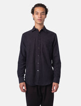 The Portuguese Flannel Sounds shirt in grey is crafted from ultra-soft brushed cotton, perfect for chilly days. It features a neat chest pocket, mother-of-pearl buttons, a subtle check pattern, and a classic collar, making it super adaptable whether you're going for smart or casual vibes.