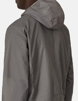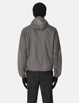 This grey ROA Hue windbreaker is a super light, packable jacket with a hood, made from transparent micro ripstop nylon with cool laser-cut details. It fits snugly, zips up the centre, and has two handy front pockets. Perfect to stash and go!