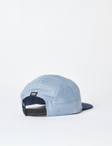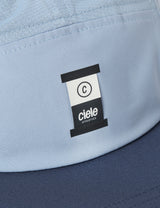 The Ciele Athletics GOCap SC Comp in chambray blue features a reflective label on the front and combines two tones with a stretch FLEXweave fabric for a snug, comfortable fit and effective sun protection.