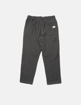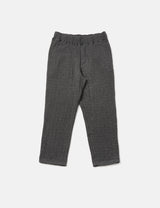 Featuring an elastic waistband with added drawstring, hidden seam slot pockets with snap closure, reinforced knee, and slightly tapered leg.