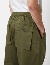 Crafted with summer-weight 3/1 twill, this pair features double knee darts, two angled front hand pockets, two rear button-flap accordion patch pockets, and a drawcord hem and waist.