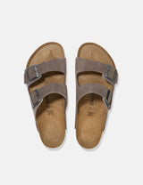 Step into style with the Birkenstock Arizona Suede in concrete gray. This iconic two-strap classic is endlessly copied but never matched.