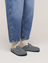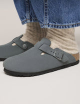 The Birkenstock Boston clog, now in basalt grey, is a timeless favourite you can rock no matter the season. Thanks to an extra foam layer, the soft footbed swoops in with all-day coziness that your feet will thank you for. Its naturally stylish look comes from the super-soft suede upper that wraps your foot like a cozy little hug.