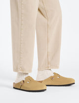 Birkenstock Boston Suede Mules (Regular Width) - Latte Cream