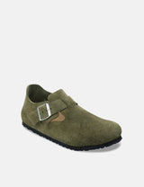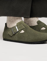 The Birkenstock London puts a fun twist on the classic Boston style. With its raised heel and clean, no-stitch design, this shoe keeps it simple yet stylish. Its natural, rugged vibe shines through the open-selvage, unlined finish.